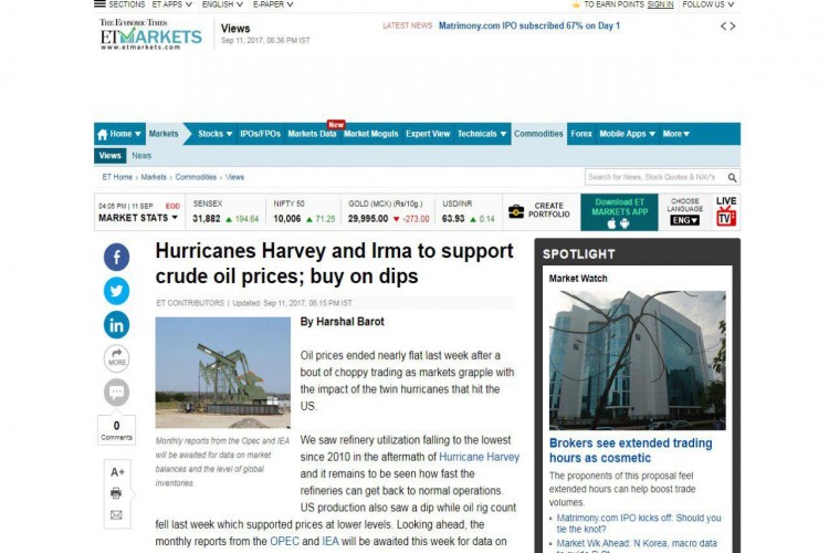 تلك التحليلات اوردتها شبكة ذا ايكونمك تايمز "The Economic Times"، عبر تقرير لها مؤكدة، بان الاعصارين اللذين ضربا الشواطئ الامريكية، قد عطلا انتاج وتصدير ما يزيد عن 3.3 مليون برميل من النفط الامريكي، بحسب بيانات التقرير الاسبوعي العالمي للنفط، فيما تعرضت باقي المنشأت والحقول النفطية الامريكية الى نسبة عجز في الاداء بلغت 79%، وهي الاكثر انخفاضا منذ عام 2010.