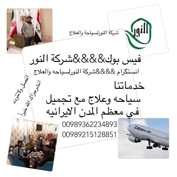 بغداد- العراق اليوم: تعلن شركة النور للسياحة العلاجية عن اضافةفقرات جديدة في دليلها السياحي المقدم للمواطنين . واشارت الشركة الى انها تقدم خدمات تجميلة في عدد كبير من المدن الايرانية بالاضافة الى منهاجها السياحي الثابت والذي يشمل الرحلات العلاجية وتوفير الخدمات الطبية على اعلى مستوى مع طاقم كامل من المترجمين والمرافقين من اصحاب الخبرة العالية .