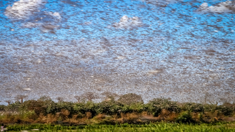 وتتدفق أسراب الجراد وتدمر المراعي والمحاصيل الثمينة في ما يعتبر أسوأ وباء الجراد الإقليمي منذ عقود، من كينيا عبر إثيوبيا واليمن، وصولا إلى أجزاء من شمال الهند.