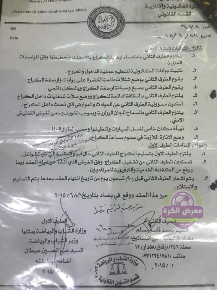تكشف وثيقة رسمية عن قيام وزير الشباب والرياضة الأسبق عبد الحسين عبطان، والذي كان عضواً في المجلس الأعلى الإسلامي العراقي، بالتعاقد لتأجير كراج ملعب الشعب الدولي بمبلغ زهيد لا يتجاوز ٤٩ مليون دينار شهرياً.