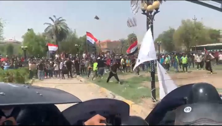 بغداد- العراق اليوم: تظهر لقطات فيديو منتشرة في مواقع التواصل الاجتماعي، عمليات الاحتكاكات الاولى في تظاهرات ذوي المهن الطبية والصحية في بغداد، و التي بدأت للاسف كما يظهر الفيديو بعد قيام "جماعة مندسة " قد لا تكون من المتظاهرين السلميين، برشق القوات الأمنية بالحجارة، مما تسبب برد فعل معاكس، و انتهى إلى حالة ترفضها وزارة الداخلية قبل غيرها. كون وزارة الداخلية تحرص كما تشير في كل بياناتها على رفض أي عنف أو أساليب غير قانونية، و تلتزم المعايير الدولية في حماية المتظاهر السلمي، و إنفاذ القانون.